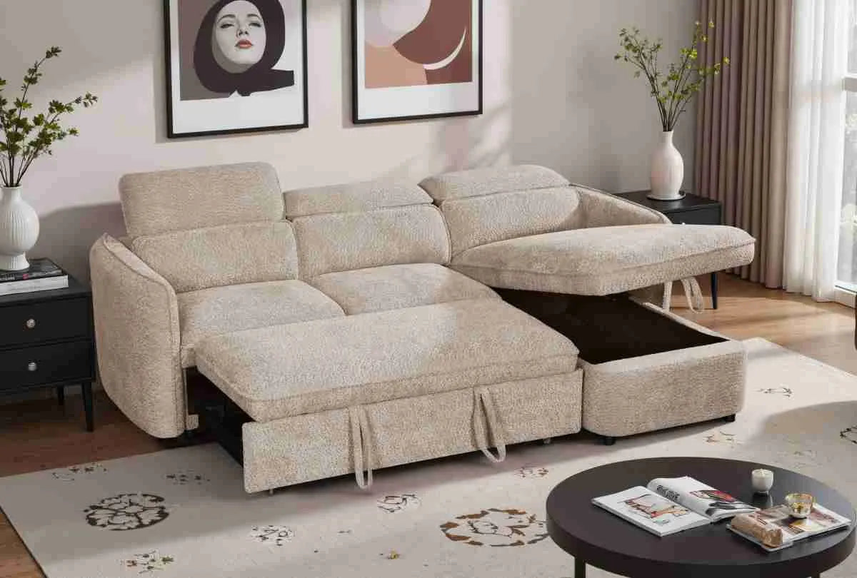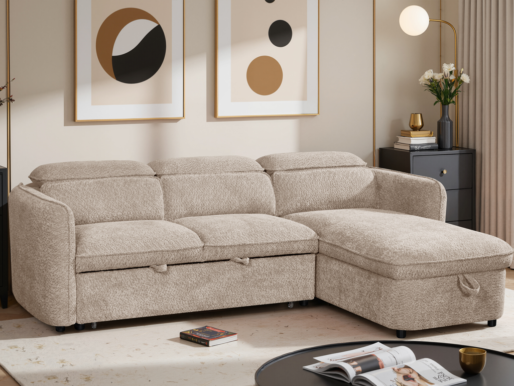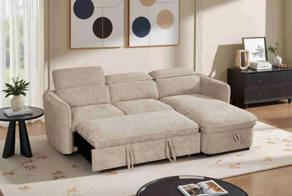 Capri Corner Sofa Bed With Storage – Beige – Universal Chaise – Pull Out Bed