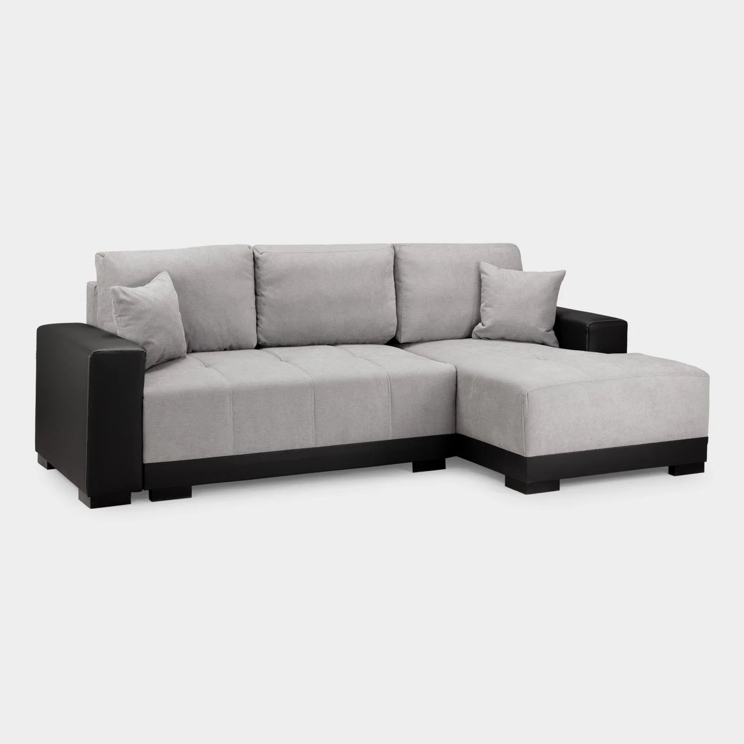 This black and grey, right hand facing corner sofa is a contemporary sofa bed that looks great in a modern interior. Striking a perfect balance between comfort and durability, this corner unit is comfortable as both a sofa and a bed. The Cimiano is a perfect addition to any modern home!