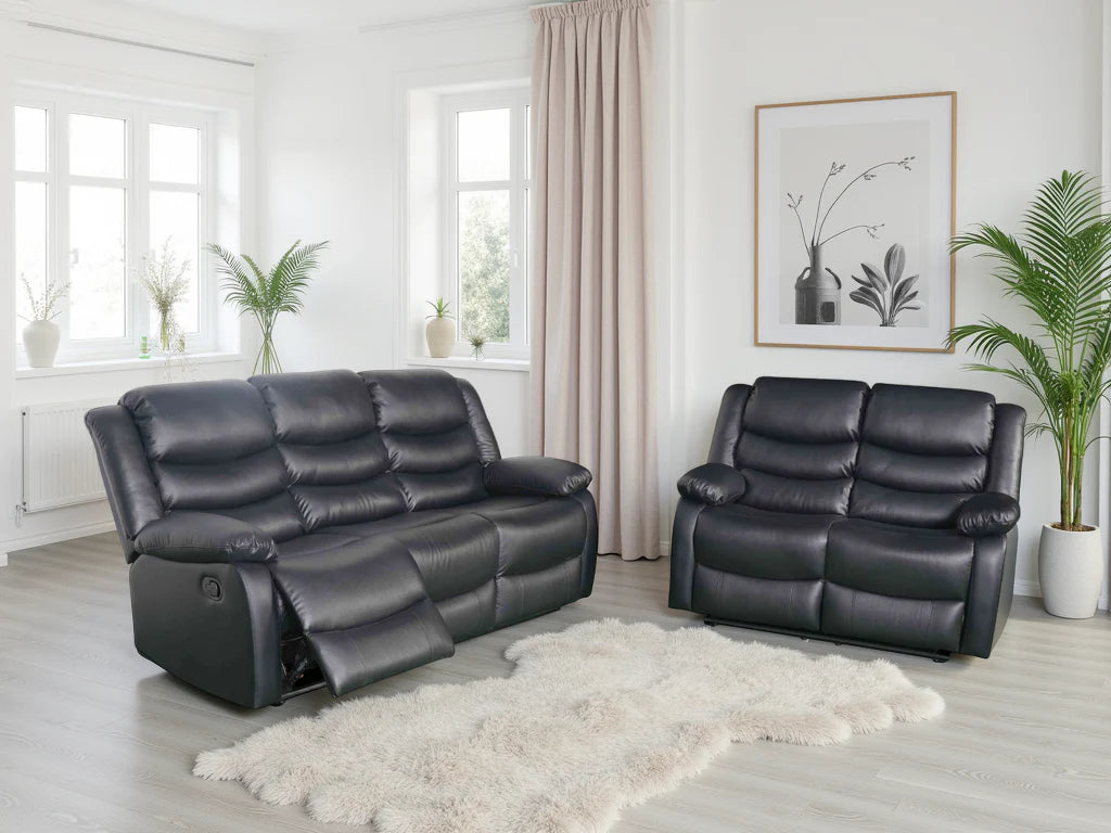 The Conrad Manual Recliner Collection offers ultimate comfort and contemporary style. Upholstered in a Black or Brown bonded leather. Its plush, padded design provides exceptional support, perfect for relaxing after a long day.