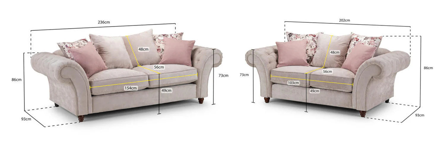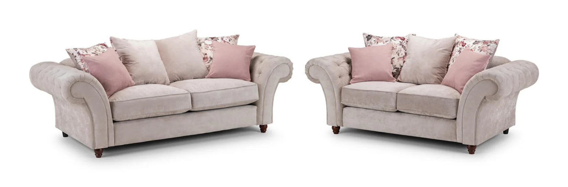 A modern take on a classic design! With rounded arms and classic buttoned effect, The Deneishia Chesterfield looks elegant and graceful, being a popular choice for bright, homely interiors. With foam-filled cushions and soft polyester upholstery, this 3+2 seater sofa set is comfortable as well as stylish.