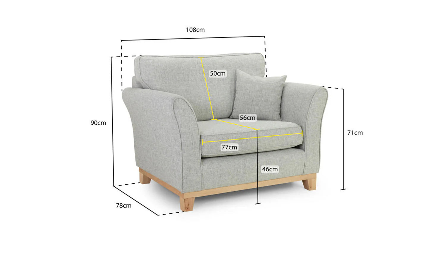 Dimension: Length: 108 cm, Depth: 78 cm, Height: 88 cm, Floor to Seat Height: 48 cm, Back Rest Height: 50 cm