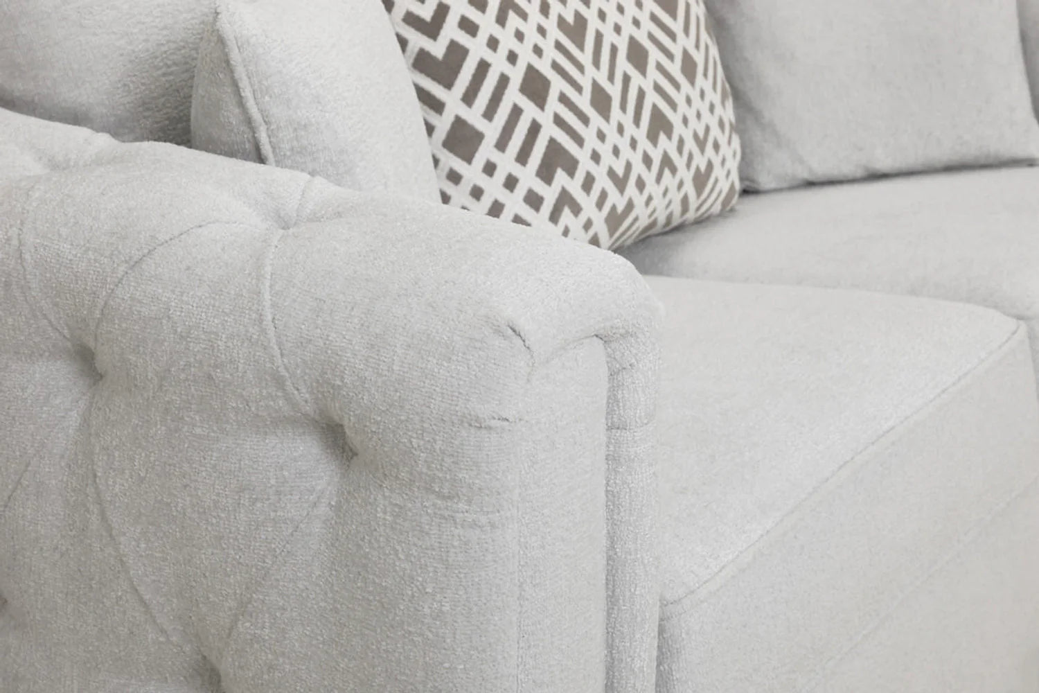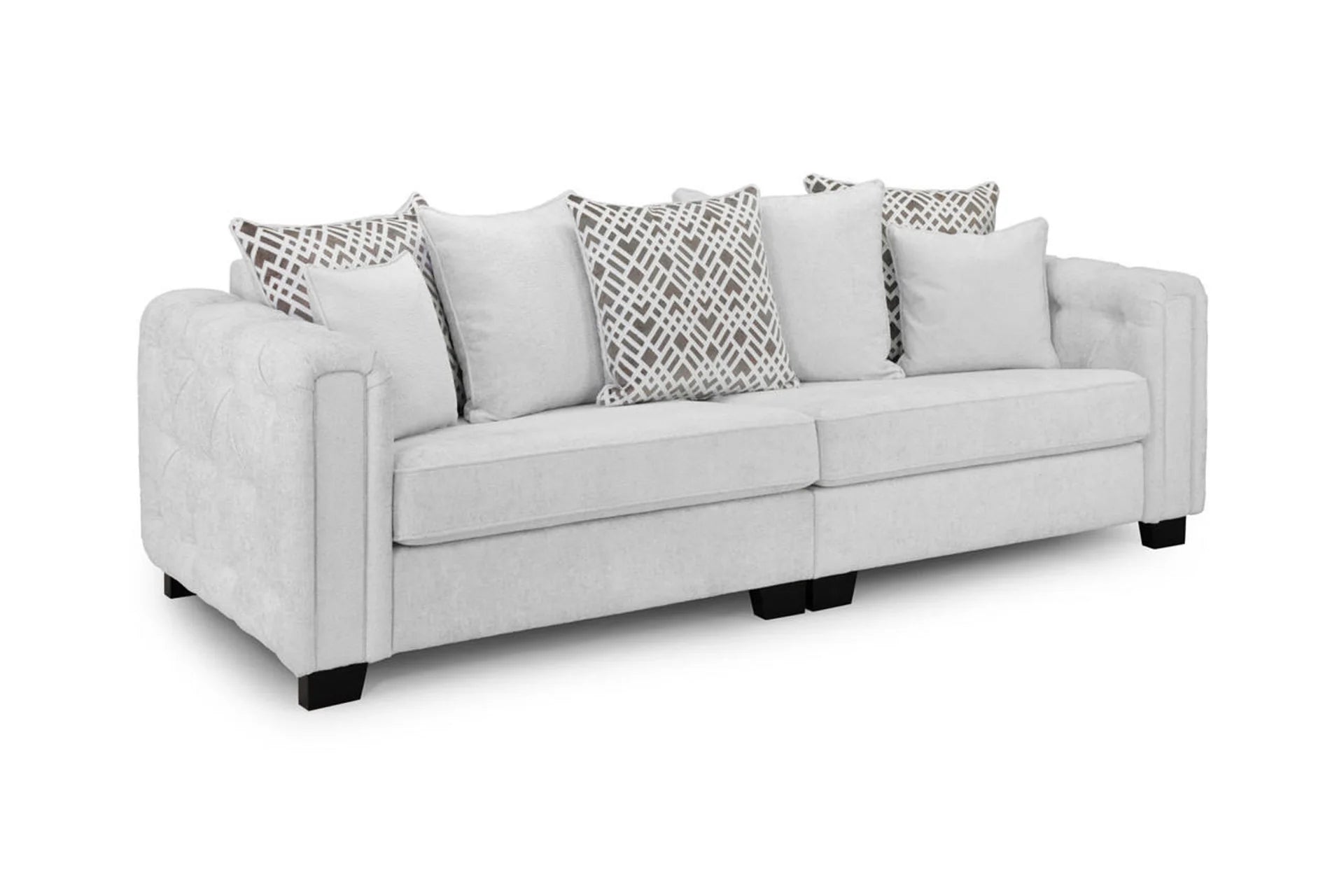 The Evins 4 Seater Sofa is the ideal addition to any modern living room. Its button-tufted design adds a touch of elegance to the space, while the light grey colour and scatterback cushions make it feel warm and inviting. The patterned cushions add a one-of-a-kind style element to your decor. The large corner design provides ample seating for you and your guests to relax in comfort. Upgrade your living room today with the Evins 4 Seater Sofa for the ultimate in relaxation and style.