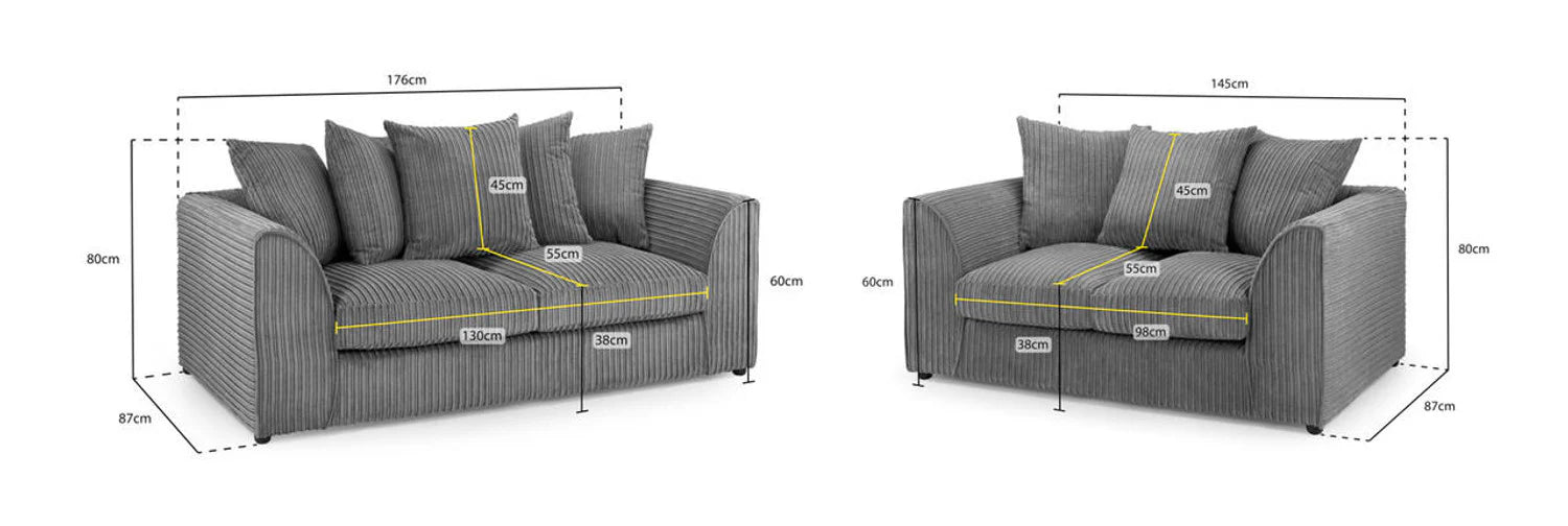 Snug and cosy! The Florus Jumbo three and two seater sofa set has soft jumbo cord upholstery that adds a comfy feel to the seating experience making it perfect for those seeking a cosy sofa.