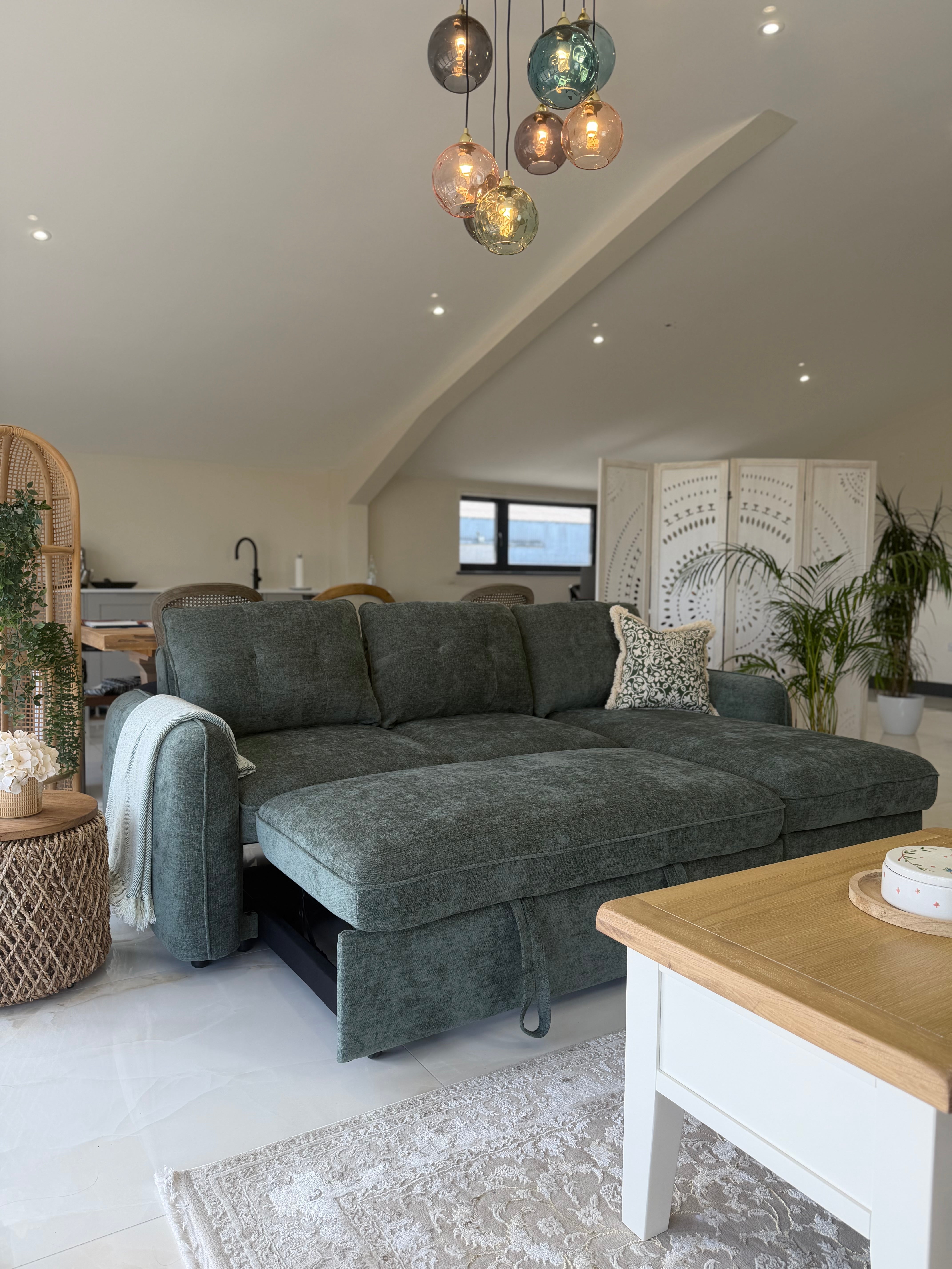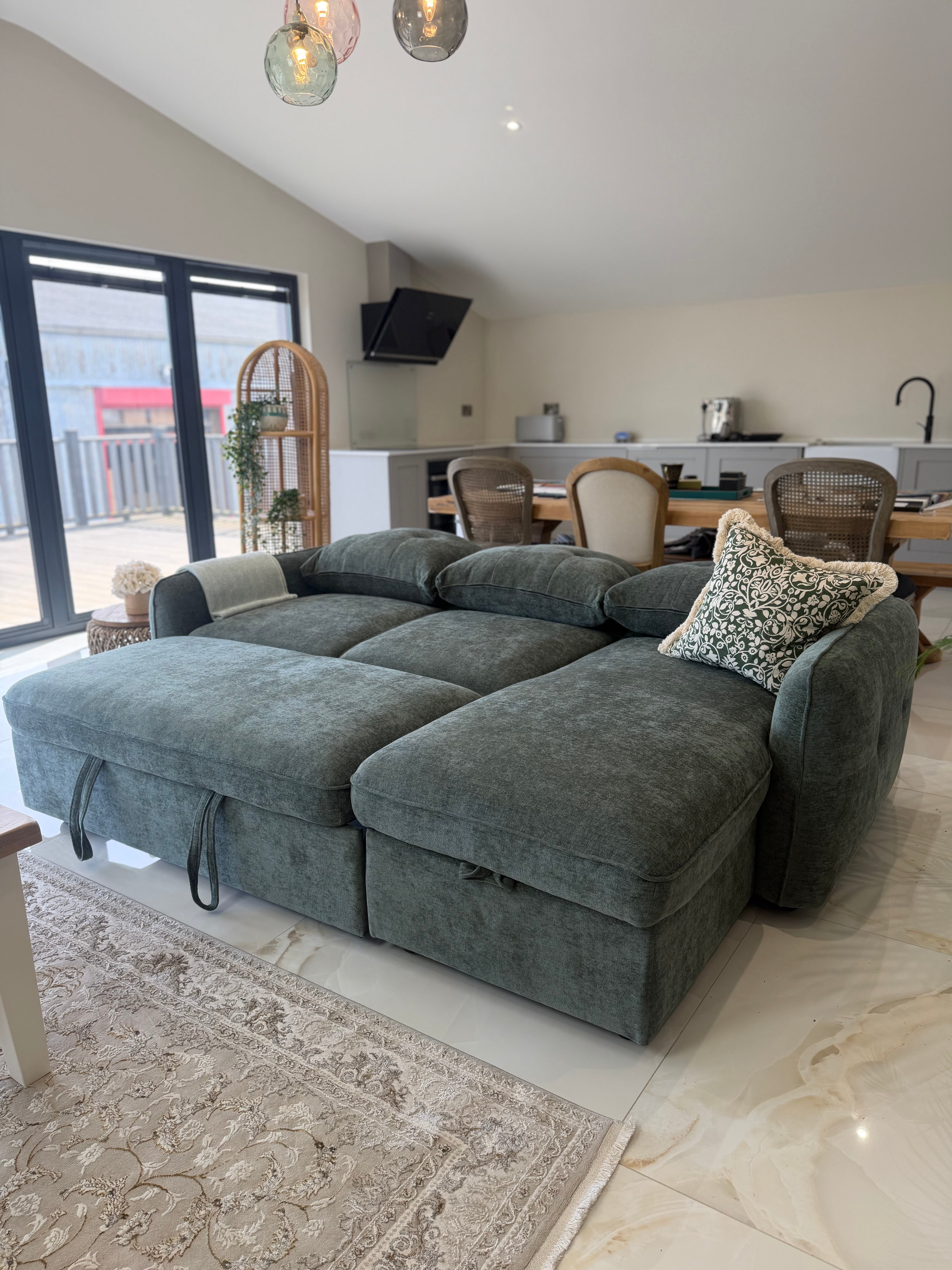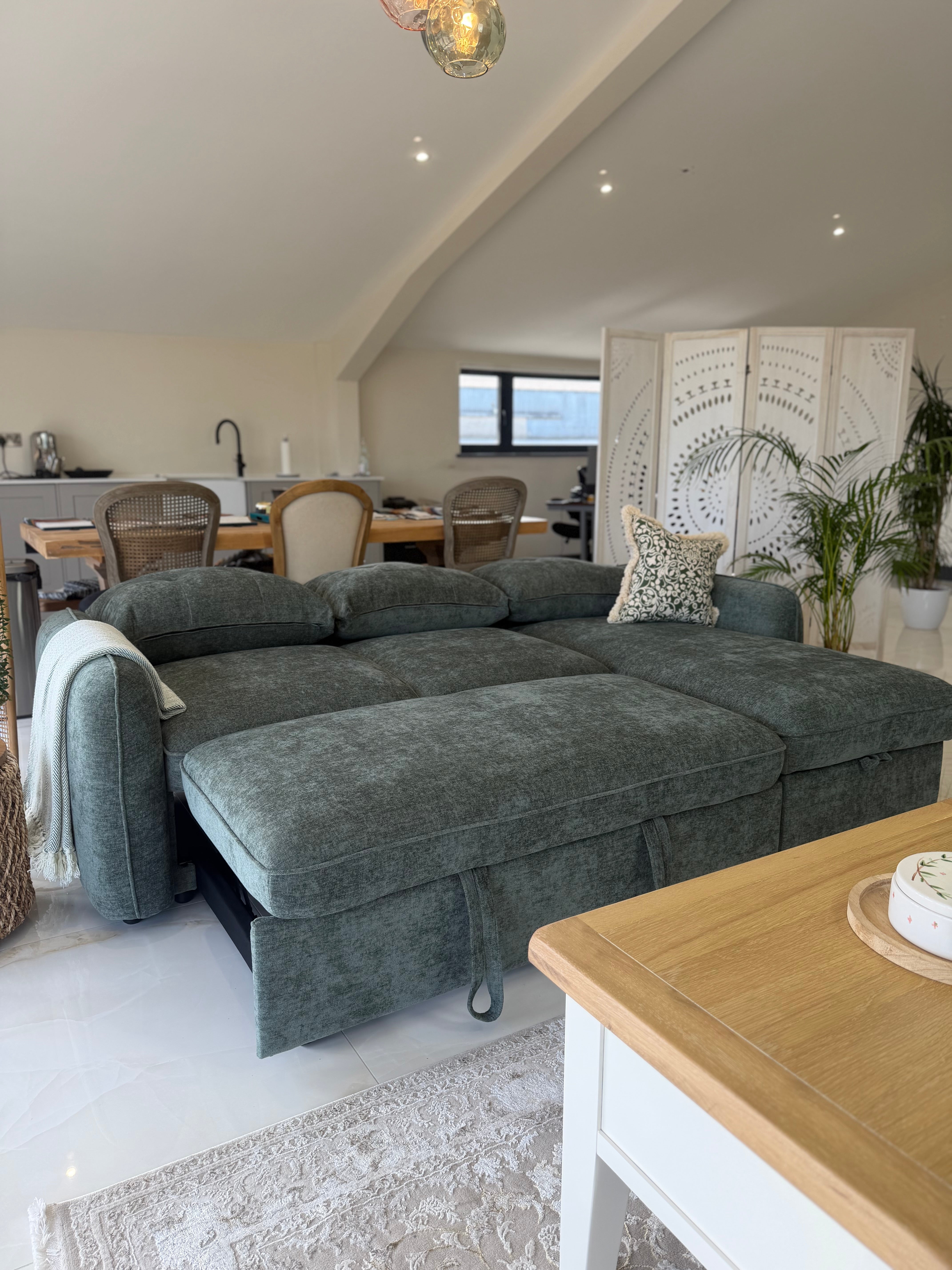 Corner offers storage and sleeping space. Modern yet functional, and four modern colours.
