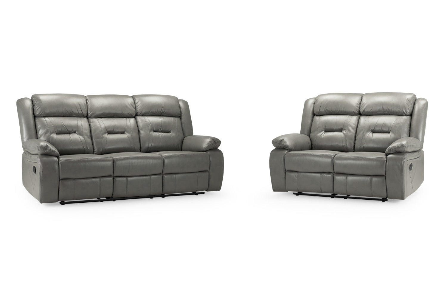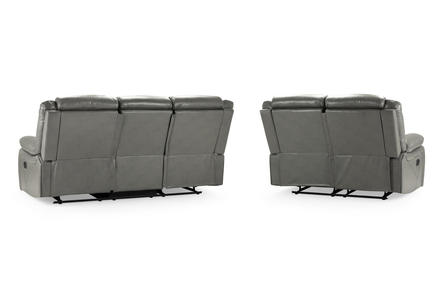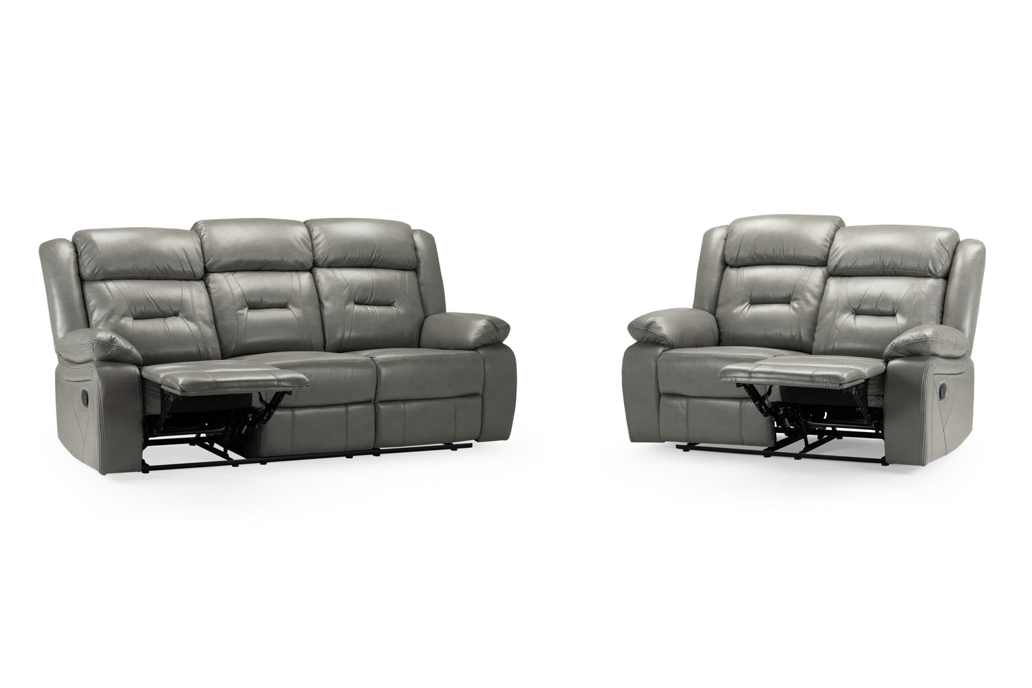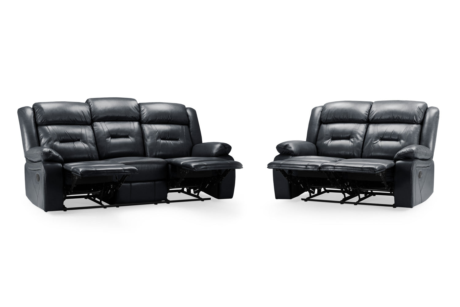 The Novie range comes in three fantastic colours, Black faux leather, grey faux leather is available as a 3+2 Seater. Features padded arms and backs and a smooth manual reclining mechanism.