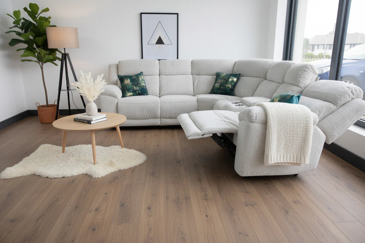 Fabric electric recliner featuring cupholders, storage and USB ports! A fully loaded and practical take on a classic recliner design. Made to a high standard with soft closing functions, and finished in a soft but durable fabric.