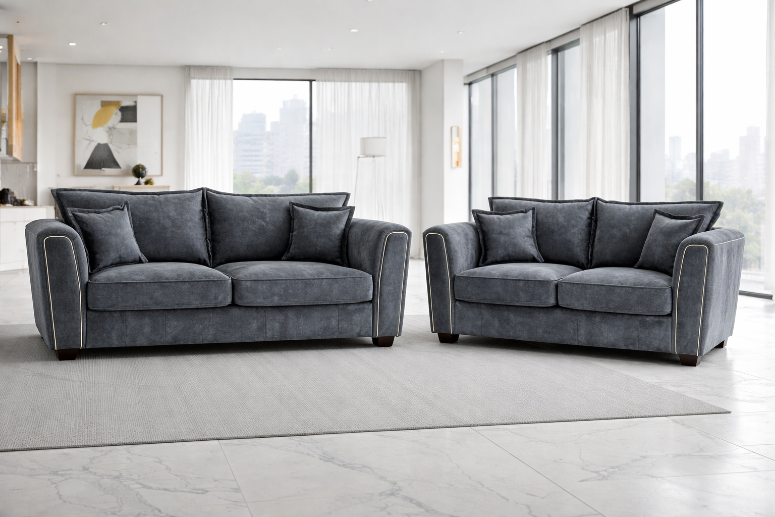 Our Serena range is now available in three stunning colours. Each colour is complimented by a metal trim on the arms, quilted sides, fine wooden feet and high back cushions.