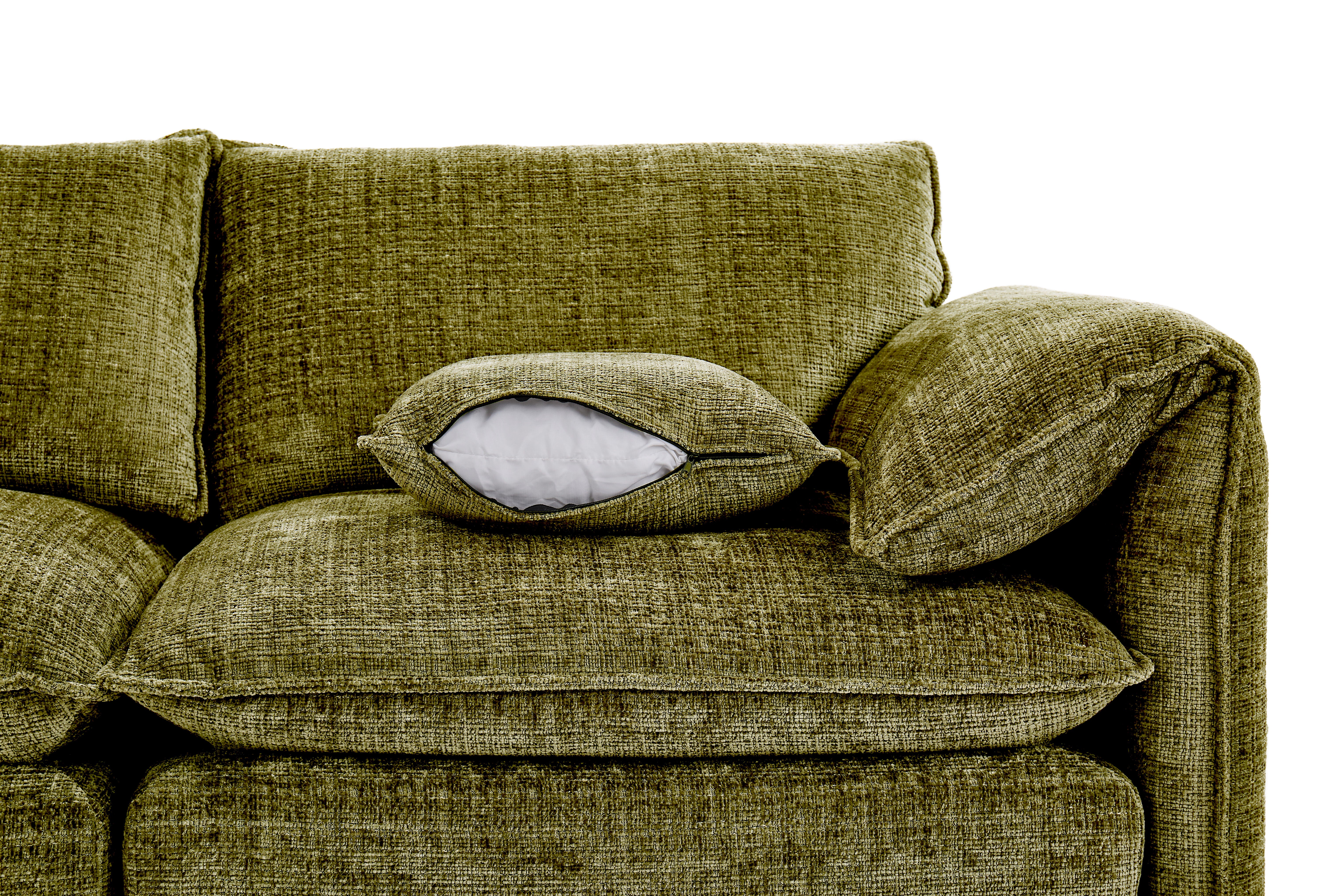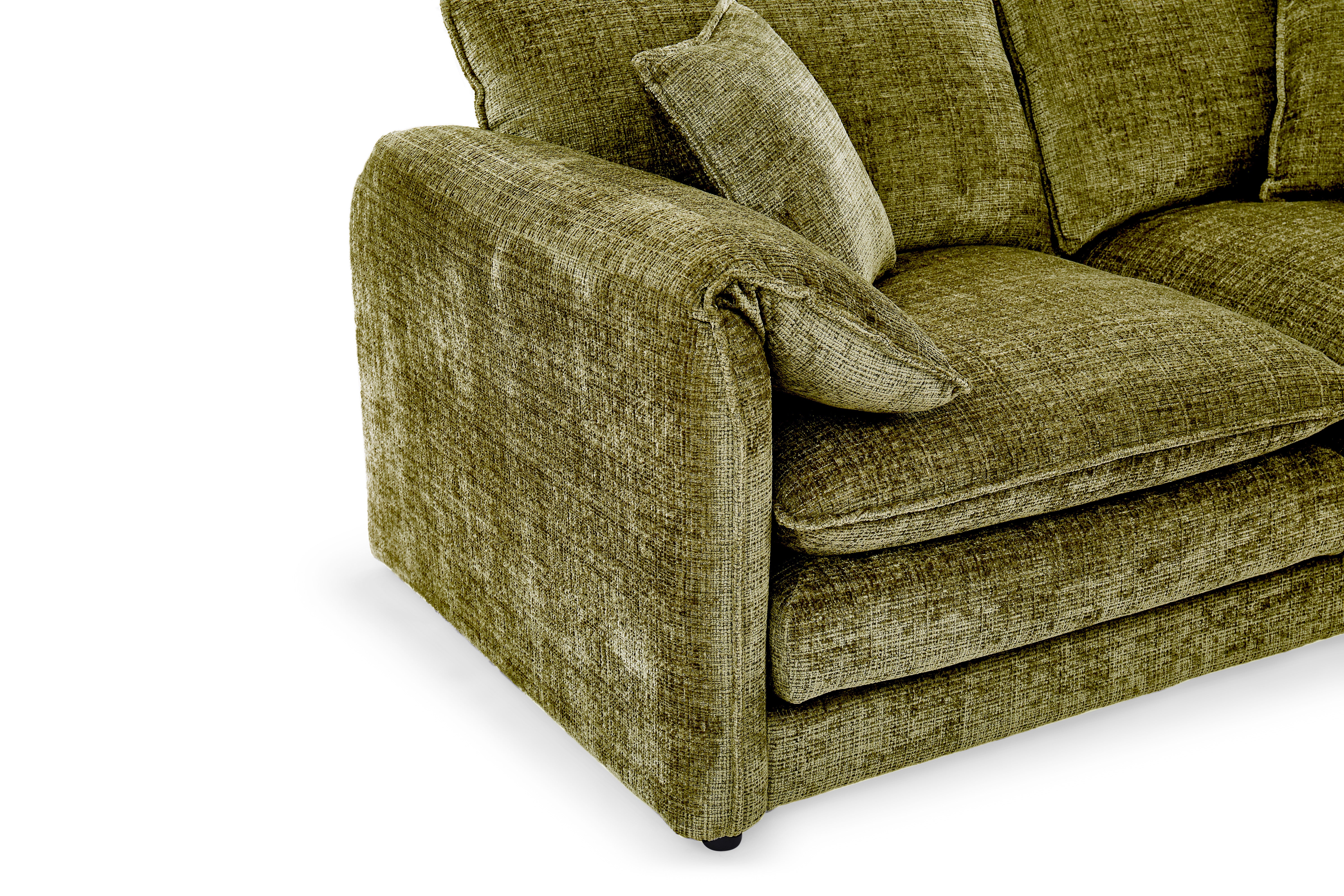 Find ultimate comfort in the Solaya collection. Wrapped in plush chenille fabric, it features a 7cm pocket coil core sandwiched between high-density foam for superior support. This multi-layered construction, finished with plush fiberfill cushions, ensures a perfectly balanced, cloud-like seating experience that lasts.