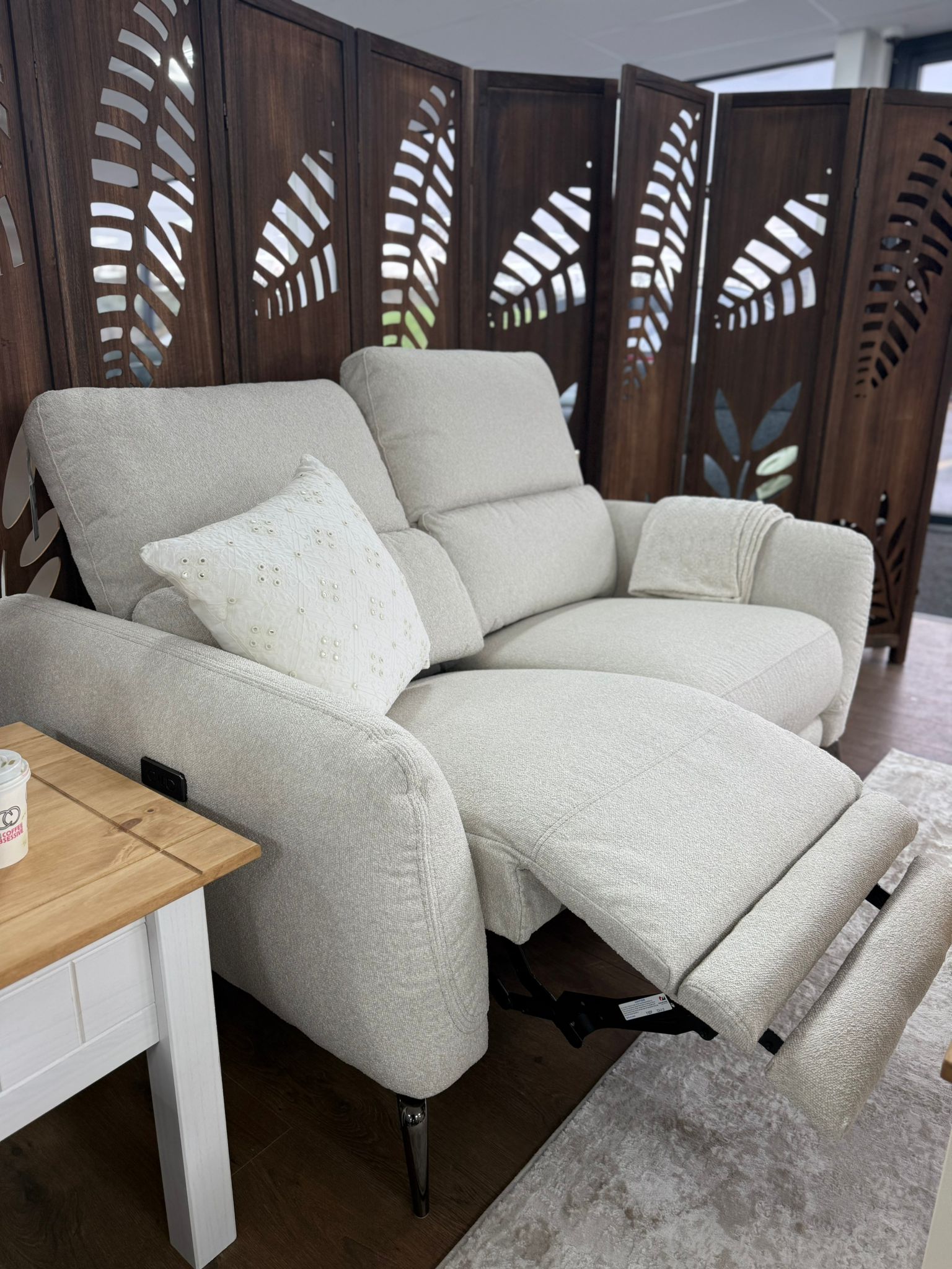 This stunning modern electric recliner is not like anything else you have seen on the market. Upholstered in soft beige and grey fabric, this electric recliner not only looks modern and clean, but offers superior comfort too.